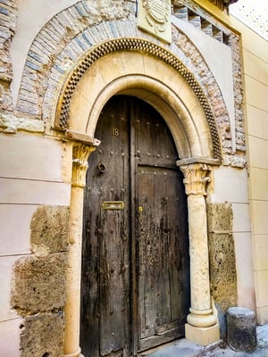 Las Canonjías era un recinto cerrado, aislado por tres grandes puertas que se cerraban al caer la noche. Hoy solo queda en pie la puerta de la Claustra, adornada con esgrafiados y una Piedad. Se cuenta que las otras dos desaparecieron para permitir el paso del cortejo de boda de Felipe II con Ana de Austria camino del Alcázar. Una boda real que literalmente abrió camino.