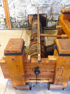 El sistema de acuñación “segoviano” que sustituyó a la acuñación manual a martillo, consistía en la producción en serie de monedas mediante los llamados “ingenios” movidos por ruedas hidráulicas. Este sistema fue mejorado en dos ocasiones más, primero con el sistema de prensa volante y a continuación con la prensa automática, rondaba el año 1866. Una de las salas muestra cada una de estas máquinas para que nos podamos hacer una idea real de lo que era la producción de la moneda y de cómo ésta fue evolucionando.