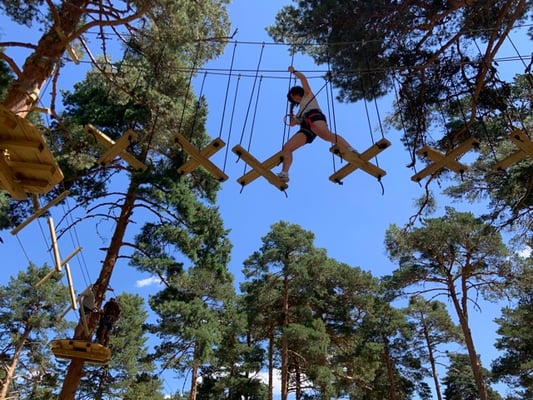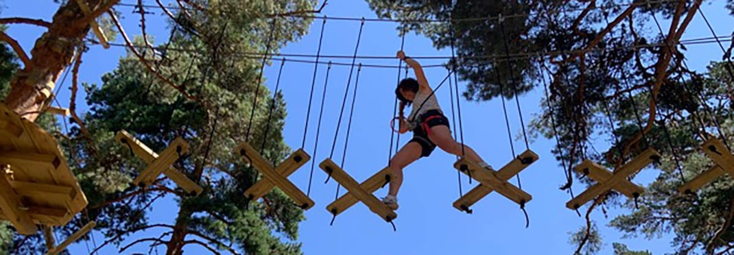 Tirolinas, redes, puentes movedizos, balancines, lianas,… y muchos más juegos originales y desafíos te esperan para vivir una experiencia inolvidable, en medio de un impresionante bosque. Los circuitos se entrelazan entre los árboles y se pierden en casi 4 hectáreas de naturaleza.