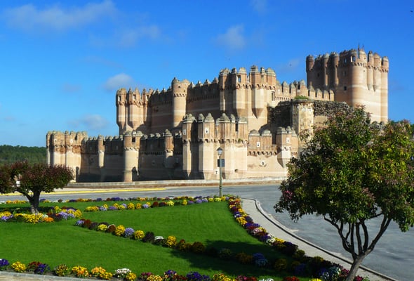 El castillo de Coca data del 1453 con la orden de construcción por parte de don Alonso de Fonseca, Arzobispo de Sevilla, y con el permiso del rey don Juan II de Castilla. En 1928 fue declarado Monumento Histórico Nacional. Actualmente está instalada una Escuela de Capacitación Forestal. El estilo del castillo es gótico-mudéjar y está considerado como una de las joyas de España en este estilo. El ladrillo es el material utilizado, no solo como material de obra, también como elemento decorativo. Destacan por su gran belleza sus salas que cuentan con hermosos motivos mudéjares en pintura y estuco.